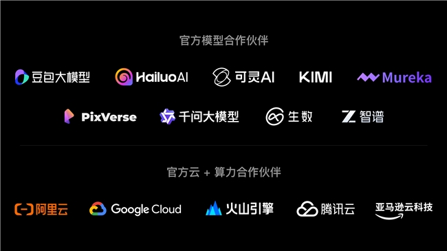 其模型合作伙伴包括豆包大模型、Hailuo AI、可灵 AI、Kimi、Mureka、PixVerse、千问大模型、生数、智谱等,覆盖视频生成、图像生成、多模态理解与音频创作等多个方向。在基础设施层面,LiblibAI 同时与阿里云、Google Cloud、火山引擎、腾讯云、亚马逊云科技等云与算力平台建立合作关系。